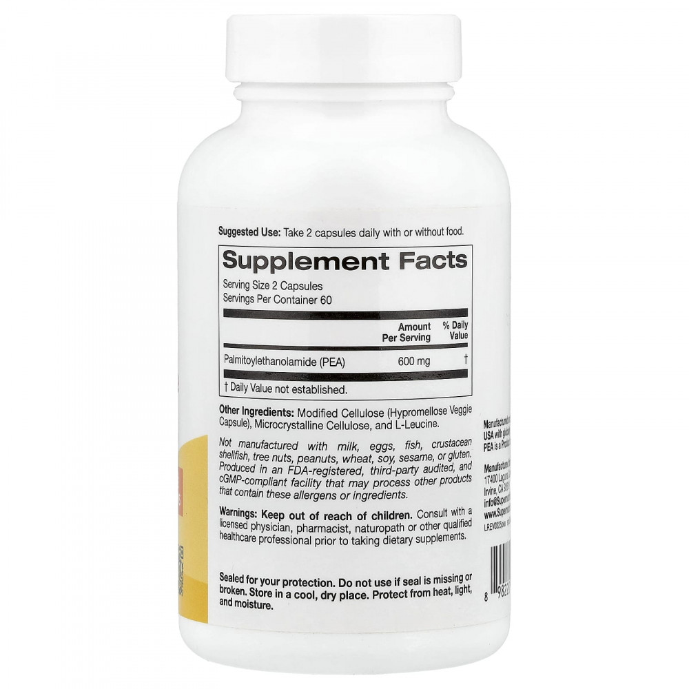 Поддержите свое здоровье с помощью пальмитоилэтаноламида (ПЭА) от Super Nutrition®. Эта формула содержит 600 мг высококачественного амида жирных кислот на порцию и разработана для поддержания естественного баланса в организме. Мы тщательно проверяем качество и с гордостью предлагаем продукт, подходящий для веганов.