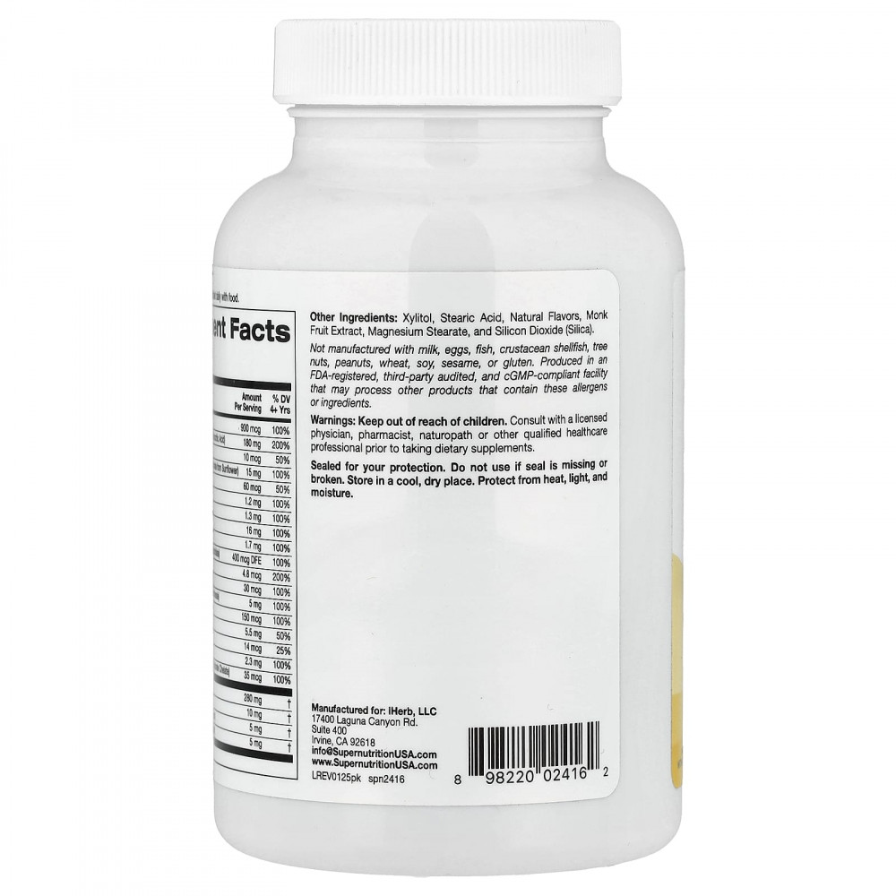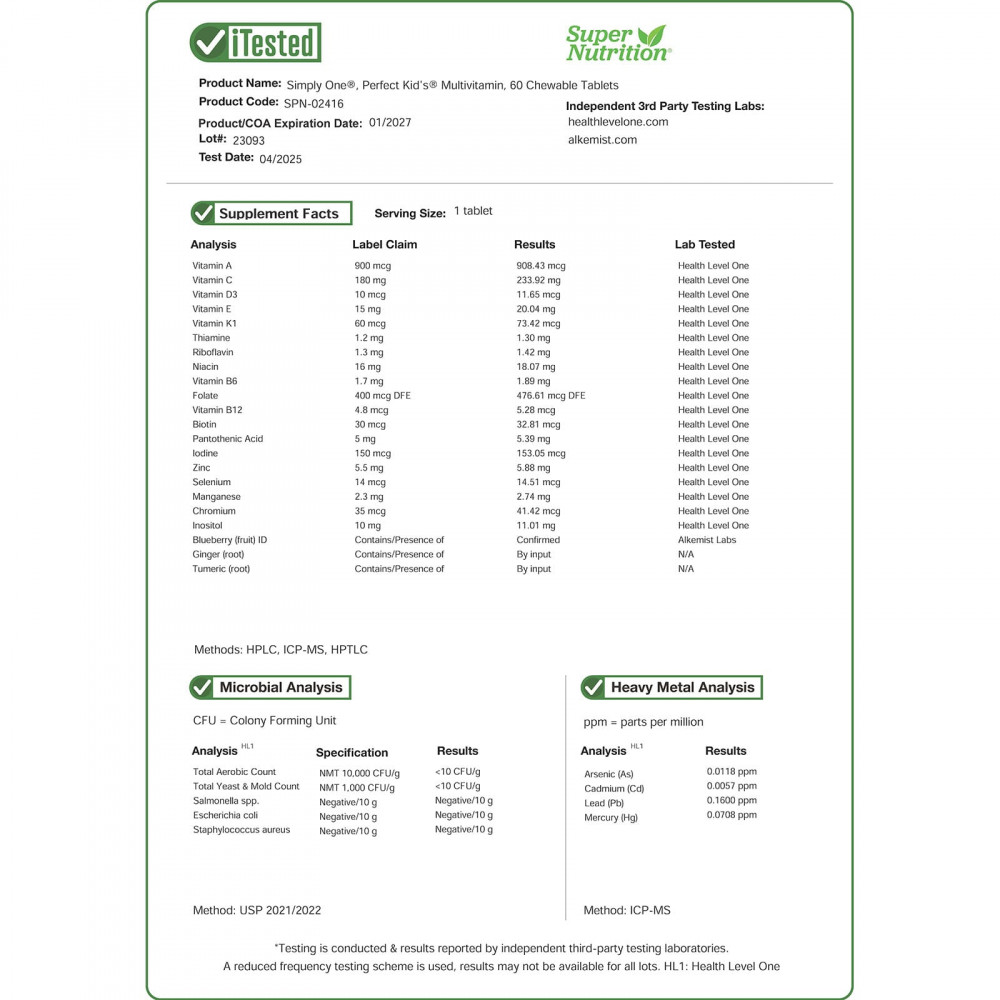 Жевательные мультивитамины для детей SimplyOne® PerfectKids® от Super Nutrition®содержат широкий спектр витаминов, минералов и растительных компонентов в удобных и вкусных жевательных таблетках. Наши мультивитамины станут отличным дополнением к обычному рациону вашего ребёнка для поддержания здоровья и питания*.