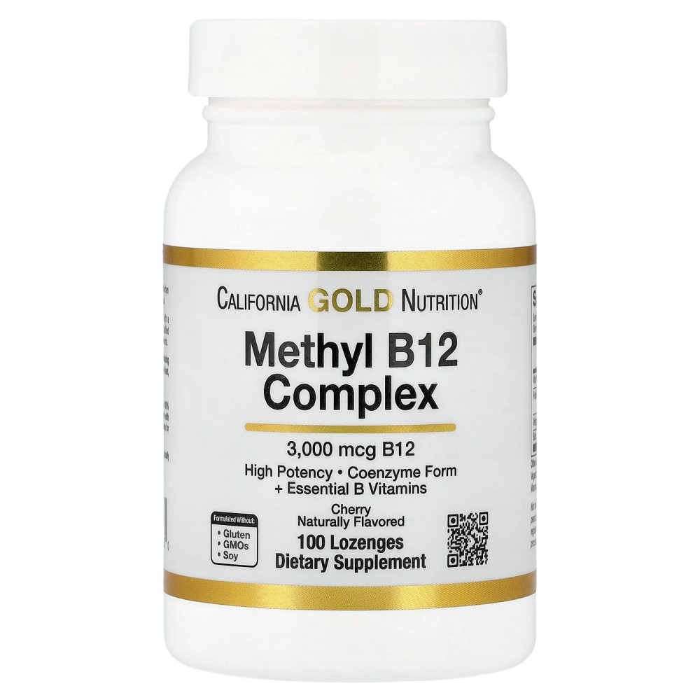 California Gold Nutrition® Комплекс метила B12 — это высокоэффективная формула, содержащая 3000 мкг биоактивного метила B12 с фолиевой кислотой, биотином и витамином B6 в пастилках с великолепным вкусом вишни, которые растворяются под языком.