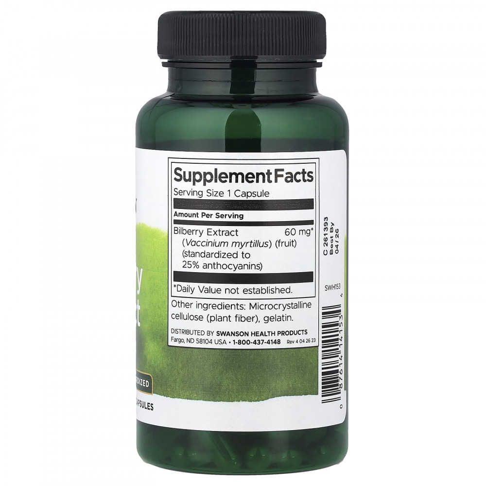 Экстракт черники Swanson — это эффективное растение, которое защищает глаза от свободных радикалов. Черника, известная своей способностью поддерживать здоровое зрение, богата антиоксидантами, называемыми антоцианами. Наша формула стандартизирована для гарантированной эффективности благодаря 25% антоцианов.