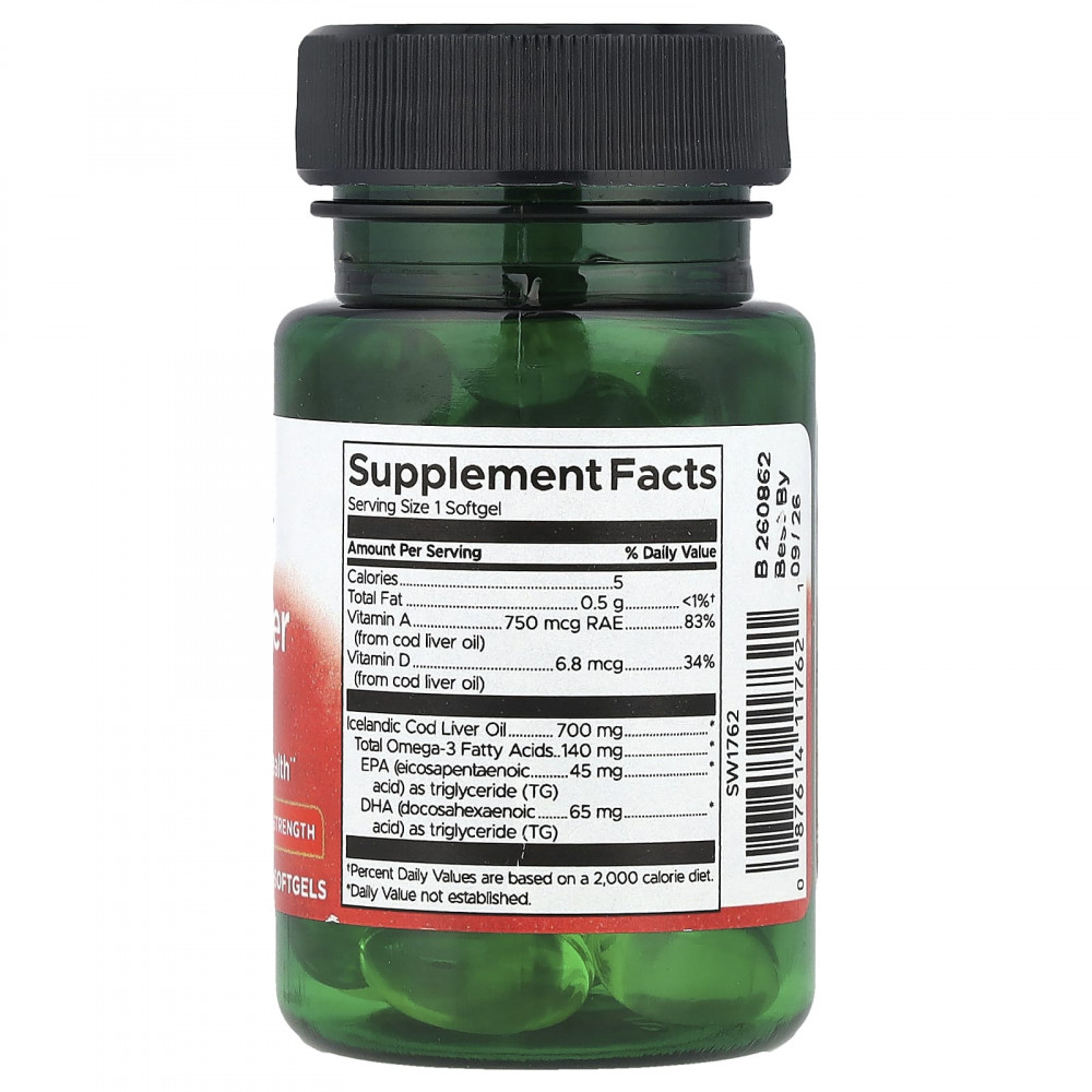Жир печени трески двойной силы Swanson — это продукт, который превосходит традиционные средства с жиром печени трески. Эта высокоэффективная добавка содержит витамины A и D для укрепления костей, здоровья глаз, кожи и иммунной системы. Каждая капсула содержит 2500 МЕ витамина A и 270 МЕ витамина D для эффективного ежедневного приёма.