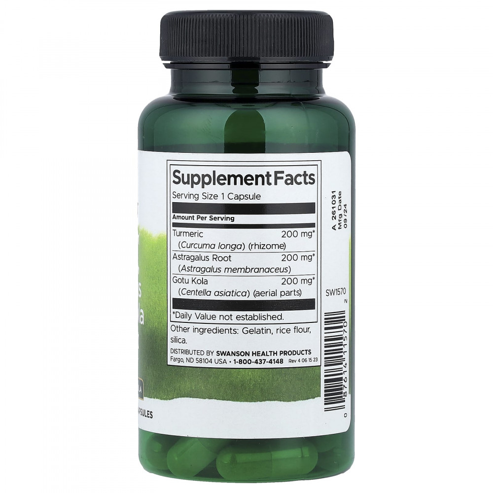 Растительная смесь с куркумой, астрагалом и готу колы Swanson Full Spectrum — это отличный способ укрепить защитные силы организма и одновременно поддержать здоровое функционирование печени и мозга. Аюрведические травники издавна ценят готу колу как средство, тонизирующее средство для памяти, куркуму — за пользу для здоровья печени, а астрагал — отличное растение, поддерживающее иммунитет.