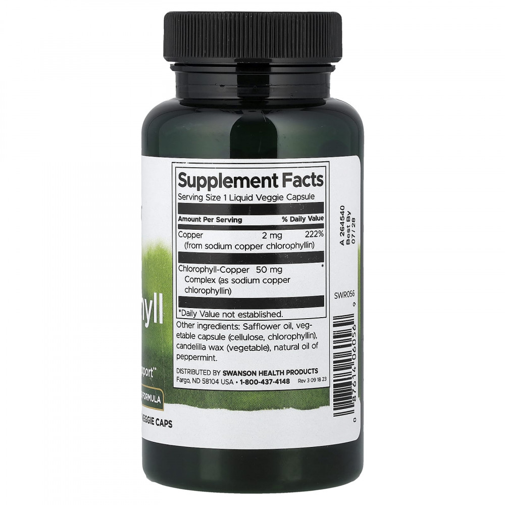 Наслаждайтесь освежающим хлорофиллом в вегетарианских капсулах с хлорофиллом от Swanson GreenFoods. Хлорофилл - это тот же зеленый пигмент, который растения используют для поглощения солнечной энергии. Он поддерживает очищающие функции организма. Но полезные свойства хлорофилла выходят далеко за рамки его эффективности в качестве очищающего средства и дезодоратора. Хлорофилл также обладает антиоксидантными свойствами и успокаивает желудочно-кишечный тракт. Наши растительные капсулы с жидкостью - отличная добавка со свежим, чистым стабилизированным хлорофиллом.