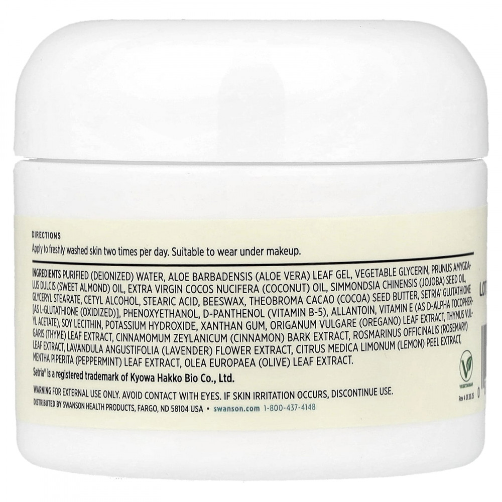 Ищете крем, который действительно питает, обеспечивает увлажнение, комфорт и поддержку кожи? Опытные создатели продуктов Swanson Premium с большой тщательностью стабилизировали уникальный ингредиент глутатион Setria®, чтобы создать этот единственный в своем роде крем. Этот крем для кожи не содержит парабенов. В его состав входит наша эксклюзивная растительная система консервантов, которая защищает деликатные ингредиенты, которые успокаивают, увлажняют, питают и защищают вашу кожу. Будущее в области омолаживания кожи, омолаживающей кожу, уже здесь, в виде крема с L-глутатионом премиального качества от Swanson.