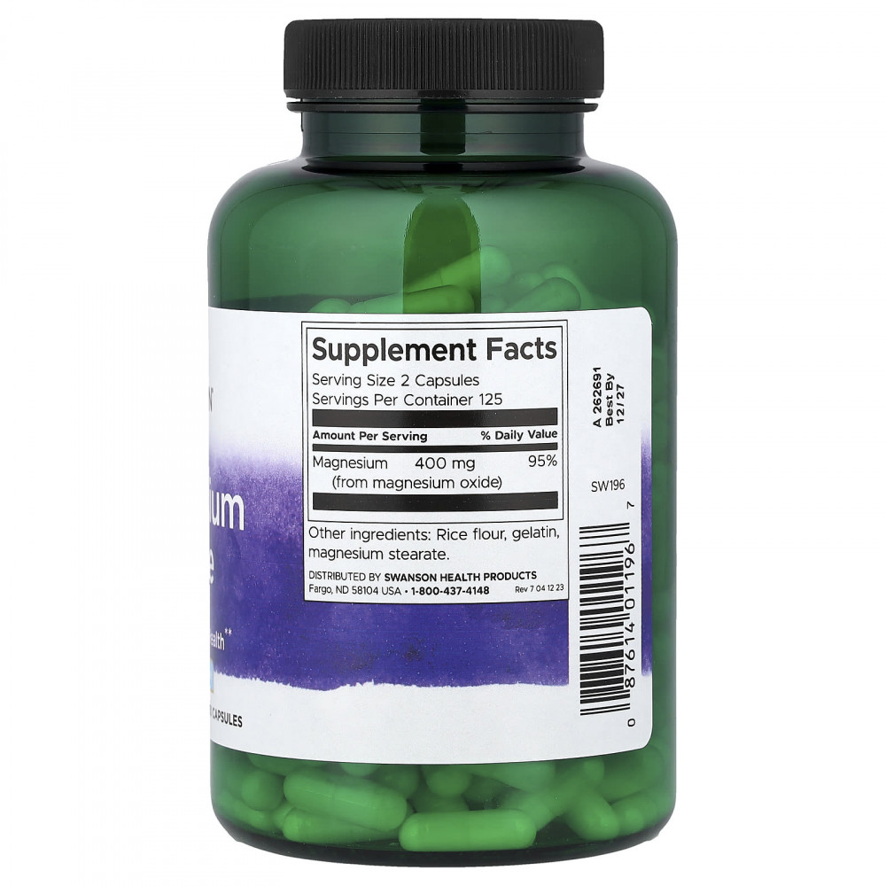 | Магний (из оксида магния) | 400 мг | 95% |