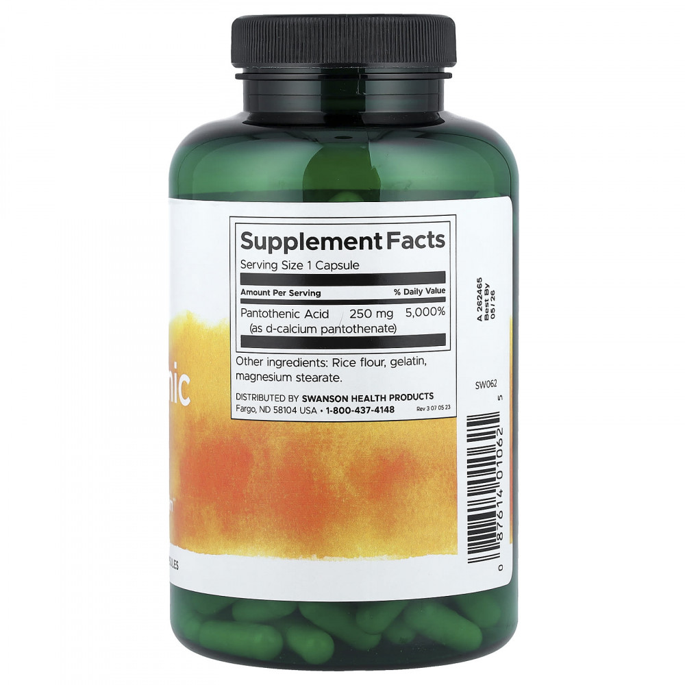 | Пантотеновая кислота (в виде d-пантотената кальция) | 250 мг | 5000% |
