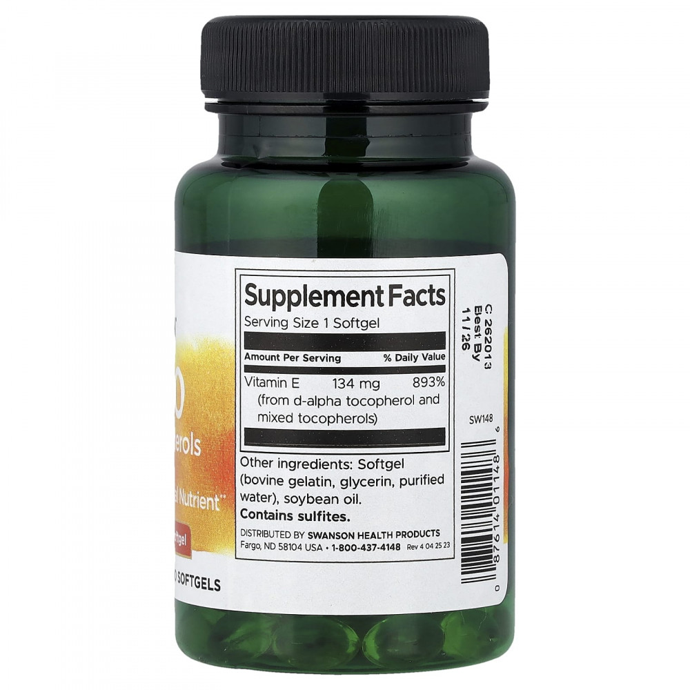 Поддержите здоровье сердечно-сосудистой системы с помощью смешанных токоферолов с витамином E. Наши мягкие таблетки с высокой биодоступностью содержат 200 МЕ (134 мг) витамина Е из смешанных токоферолов для эффективной ежедневной антиоксидантной поддержки. В натуральных источниках пищи витамин E (d-альфа токоферол) содержится в смеси токоферолов, которые вместе нейтрализуют свободные радикалы.