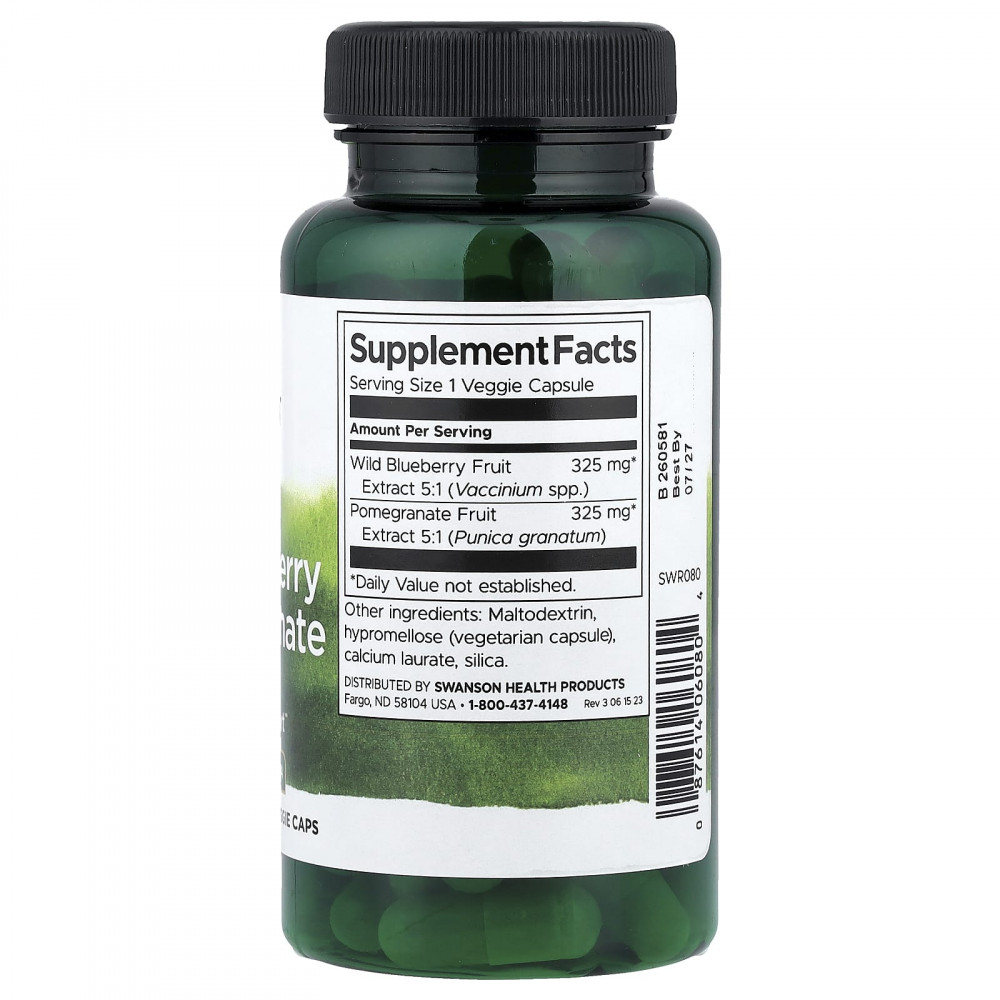 Воспользуйтесь преимуществами голубики и граната с дикорастущей голубикой и гранатом от Swanson Green Foods Formulas. Голубика является источником витамина C, витамина K, клетчатки и марганца, необходимых для здоровья костей и суставов. Гранат содержит ниацин, который поддерживает обмен веществ. Этот энергичный дуэт богатых антиоксидантами фруктов обеспечивает поддержку здоровья сердечно-сосудистой системы и пищеварительной системы, а также способствует выработке энергии и поддерживает нормальную когнитивную функцию.