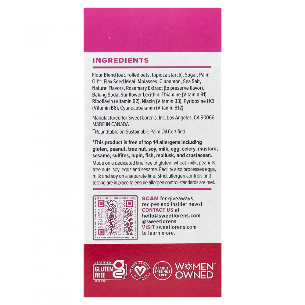 Идеальный завтрак, снек или тонизирующее средство существует! Добавьте их в кофе, чай или взять с собой. Хрустящие и достаточно сладкие, с натуральными питательными веществами, которые способны поддержать вас — 4 г протеина, 19 г цельных злаков, хороший источник клетчатки и витаминов группы B. Выпечка на завтрак — это вкусное начало дня для людей любого возраста. Я создала компанию Sweet Loren's после того, как переболела раком, когда мне было 20 лет. Я понимала, что употребление простых ингредиентов помогает лучше чувствовать себя физически и психически. Наслаждайтесь жизнью на полную и делитесь информацией с уверенностью.