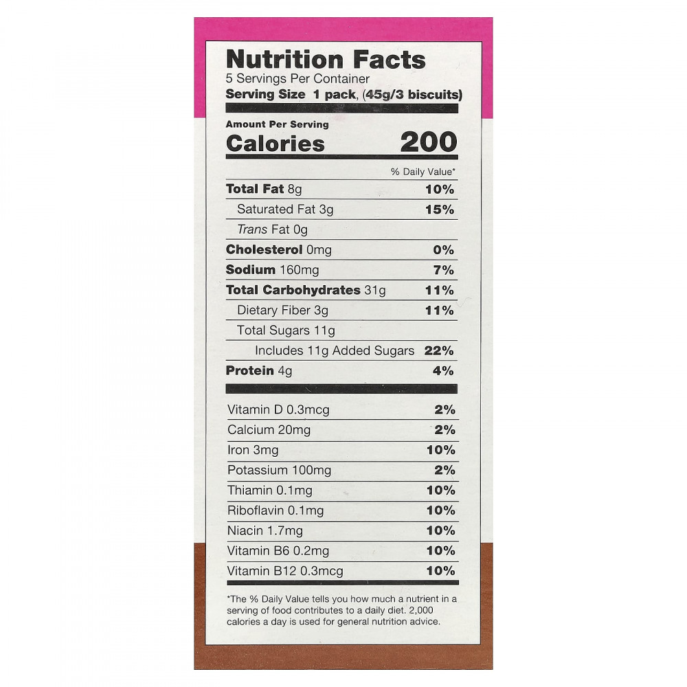 Идеальный завтрак, снек или тонизирующее средство существует! Добавьте их в кофе, чай или взять с собой. Хрустящие и достаточно сладкие, с натуральными питательными веществами, которые способны поддержать вас — 4 г протеина, 19 г цельных злаков, хороший источник клетчатки и витаминов группы B. Выпечка на завтрак — это вкусное начало дня для людей любого возраста.