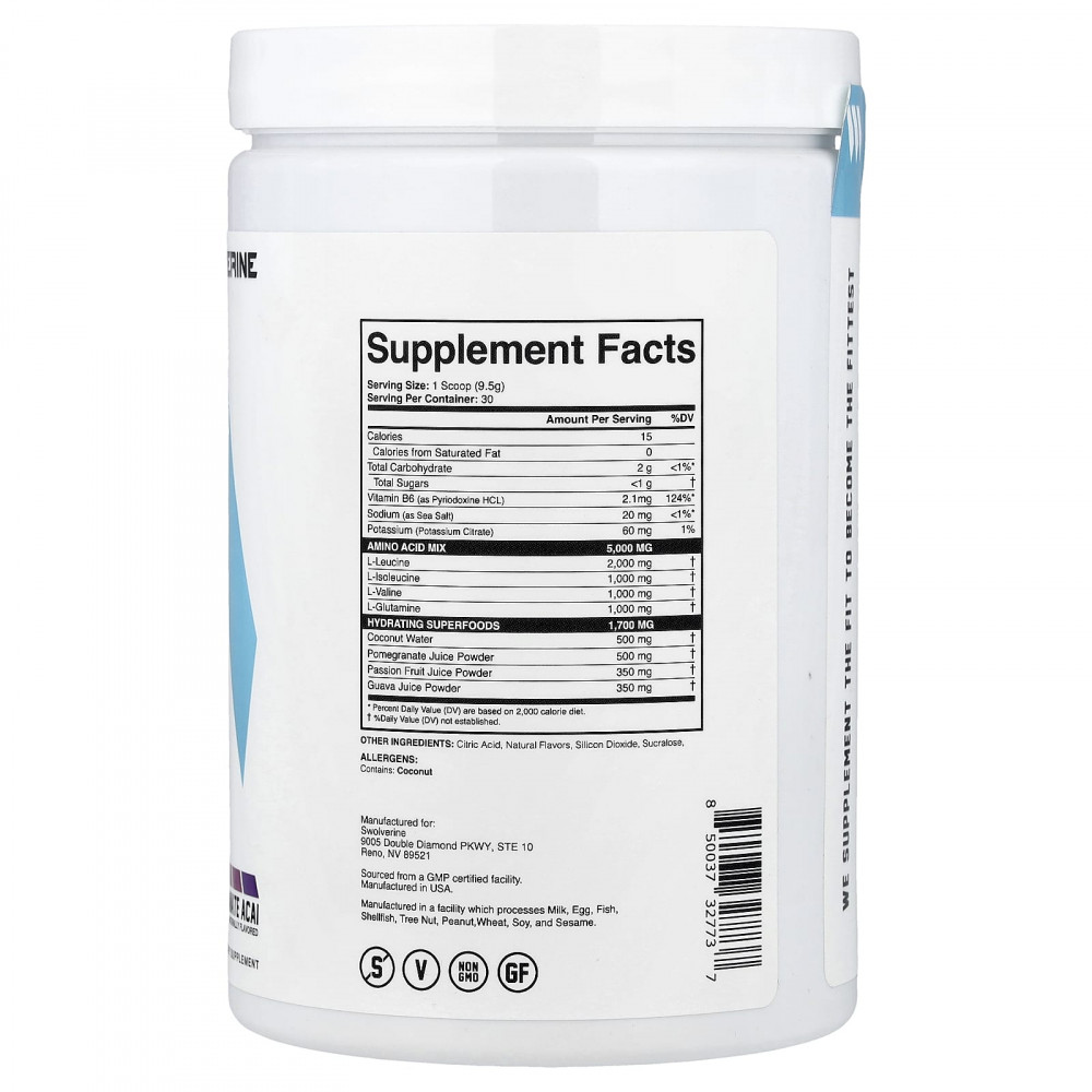 BCAA 2:1:1 от Svolverine - это синергетическое сочетание веганских аминокислот с разветвленной цепью, L-глютамина и увлажняющих суперфудов, включая кокосовую воду, гуаву, гранат и маракуйю, которые помогают обеспечить гидратацию во время тренировки, борются с усталостью, поддерживают сухой мышечной массы и оптимизации восстановления. Наши BCAA 2:1:1 с множеством восхитительных освежающих вкусов являются идеальной добавкой для тренировок, чтобы увлажнять и восстанавливать сухую мышечную массу.