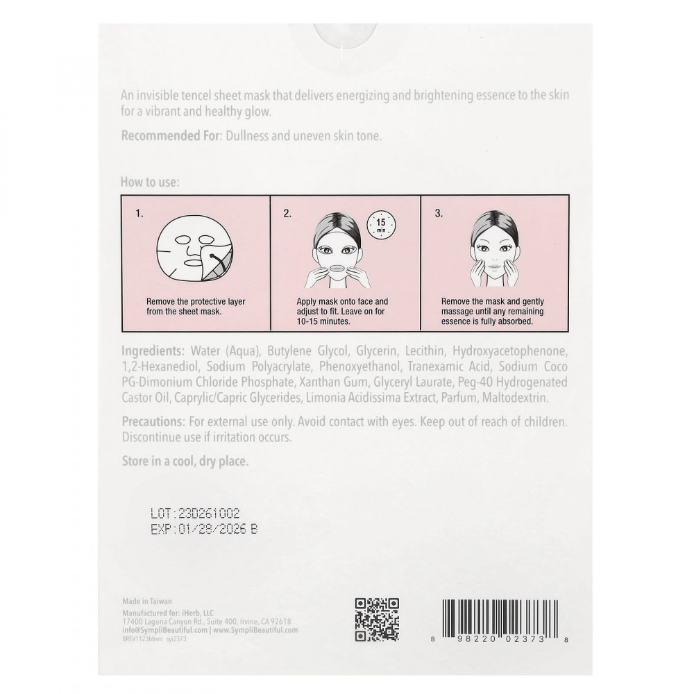Осветляющие тканевые маски от Sympli® Beautiful рекомендуются для устранения тусклости и неровного тона кожи. Осветляющие ингредиенты, такие как транексамовая кислота, соединения кокоса и деревянное яблоко (Limonia acidissima), придают коже здоровое сияние. Невидимые биоразлагаемые тканевые маски из целлюлозы доставляют на кожу тонизирующую и осветляющую эссенцию.