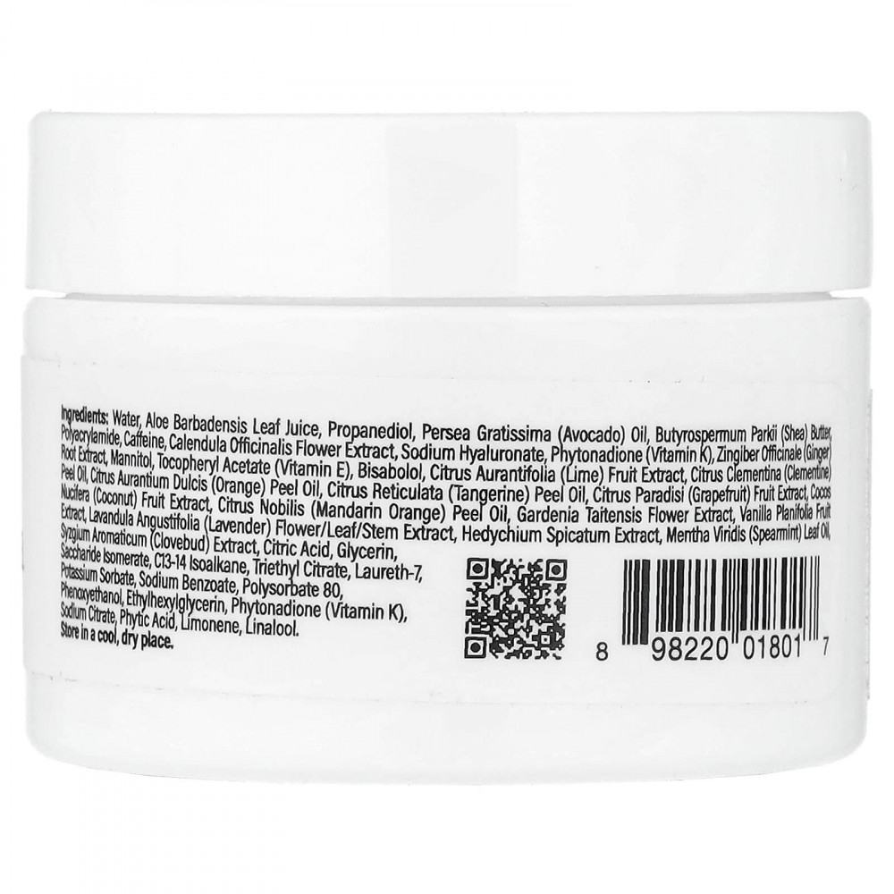Вода, сок листьев алоэ вера (Aloe barbadensis), пропандиол, масло авокадо (Persea gratissima), масло ши (Butyrospermum parkii), полиакриламид, Кофеин, экстракт цветков календулы (Calendula officinalis), Гиалуронат натрия, фитонадион (витамин K), экстракт корня имбиря (Zingiber officinale), маннит, токоферилацетат (витамин Е), Бисаболол, экстракт плодов лайма (Citrus aurantifolia), масло из цедры клементина (Citrus clementina), масло из цедры апельсина (Citrus aurantium dulcis), масло из цедры мандарина (Citrus reticulata), экстракт плодов грейпфрута (Citrus paradisi), экстракт кокоса (Cocos nucifera), масло из цедры мандарина (Citrus nobilis), экстракт цветков гардении тайской (Gardenia taitensis), экстракт ванили (Vanilla planifolia), экстракт цветков/листьев/стеблей лаванды (Lavandula angustifolia), экстракт гедихиума увенчанного (Hedychium spicatum), масло из листьев мяты колосистой (Mentha viridis), экстракт бутонов гвоздики (Syzgium aromaticum), лимонная кислота, глицерин, инвертный сахар, C13-14 изоалкан, триэтилцитрат, лаурет-7, сорбат калия, бензоат натрия, Полисорбат 80, феноксиэтанол, этилгексилглицерин, фитонадион (витамин K), цитрат натрия, фитиновая кислота, лимонен, линалоол.
