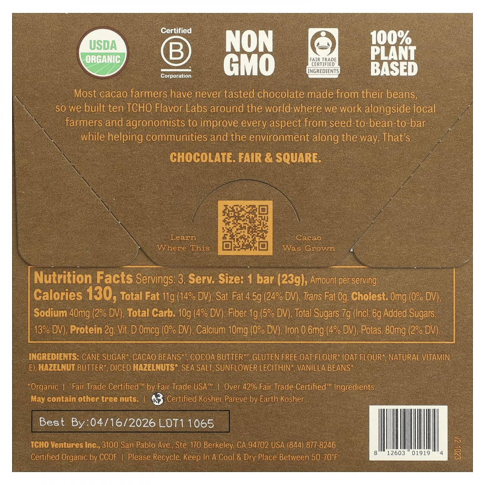 Тростниковый сахар*, какао-бобы*º, какао-масло*º, овсяная мука без глютена* (овсяная мука*, натуральный витамин Е), паста из фундука*, нарезанный фундук*, морская соль, подсолнечный лецитин*, стручки ванили.
