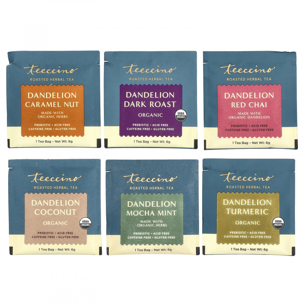 Смеси Teeccino's с одуванчиком содержат стимулирующие горькие нотки из корня цикория и одуванчика и могут быть слегка подслащенными за счет фиников и инжира или большего количества кофе, например, семян хлебного дерева.