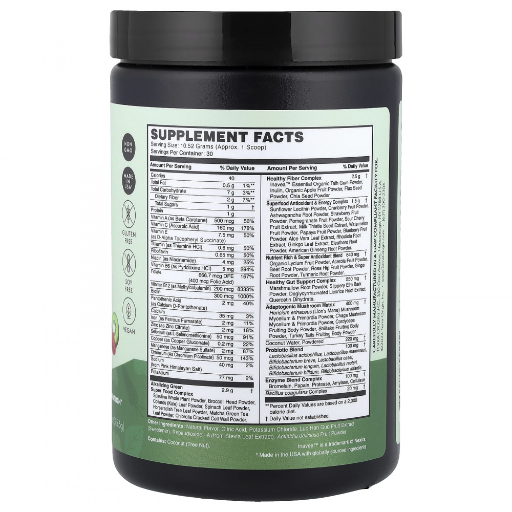 Увеличение энергии: Здоровая зелень от Terra Origin содержит адаптогены, витамины, минералы и зеленые суперпродукты, которые помогают повысить уровень энергии и снизить усталость.