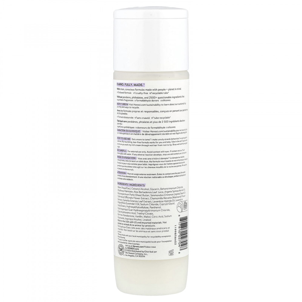 Есть грива, которую нужно приручить? Я заставляю непослушные волосы вести себя, но у меня есть и мягкая сторона. Моя питательная смесь без слез работает для вас и ребенка. Ощутите успокаивающий аромат лаванды, нанося густой крем на влажные волосы от корней до кончиков. Хорошо промойте и желаю спокойной ночи.