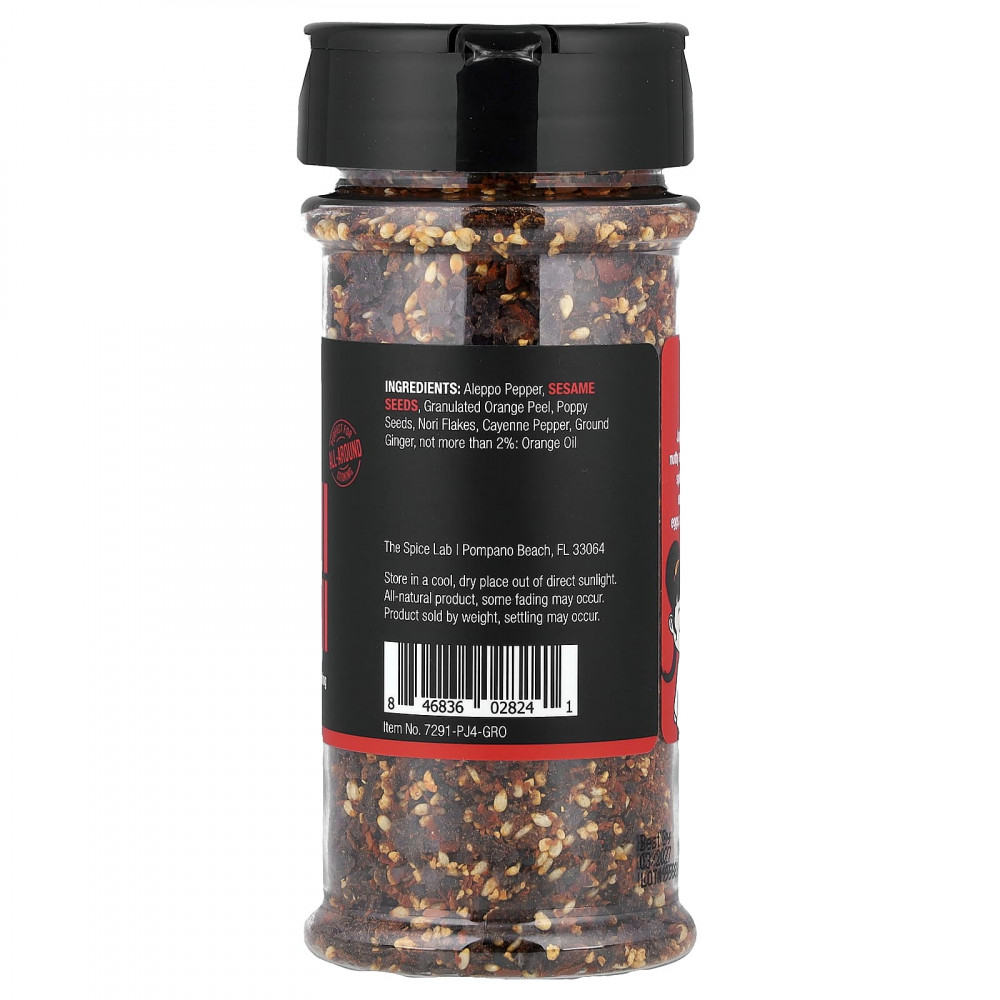 Перец Алеппо, семена кунжута, гранулированная цедра апельсина, мак, хлопья нори, кайенский перец, молотый имбирь, не более 2%: масло апельсина.