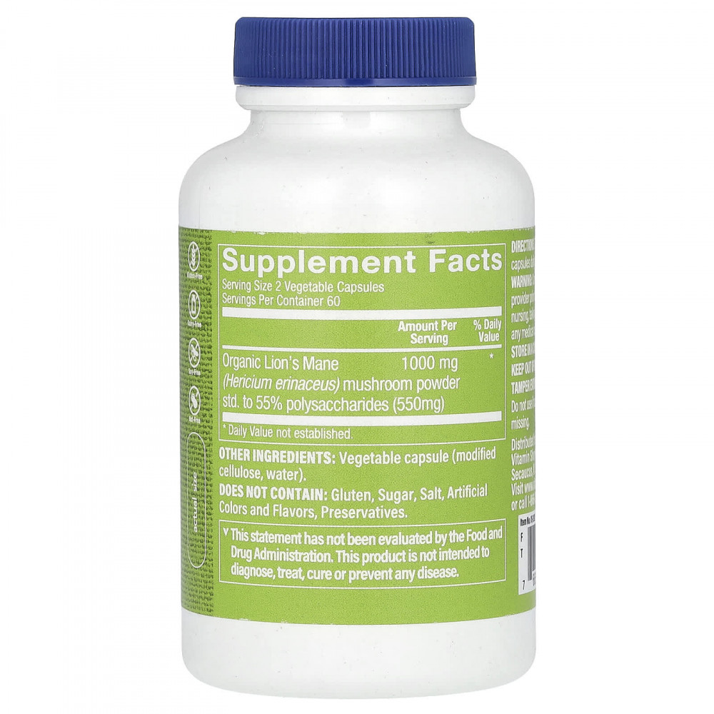 Капсулы с ежовиком гребенчатым от бренда Vitamin Shoppe® содержат 1000 мг порошка органического Hericium erinaceaus для поддержки работы мозга.