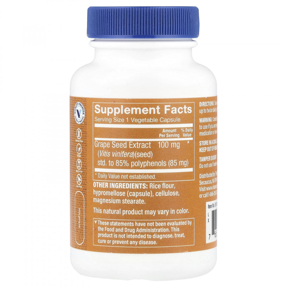 Экстракт виноградных косточек Vitamin Shoppe®, разработанный для поддержки здоровья сердца и клеток, содержит 75% стандартизированных проантоцианидинов.