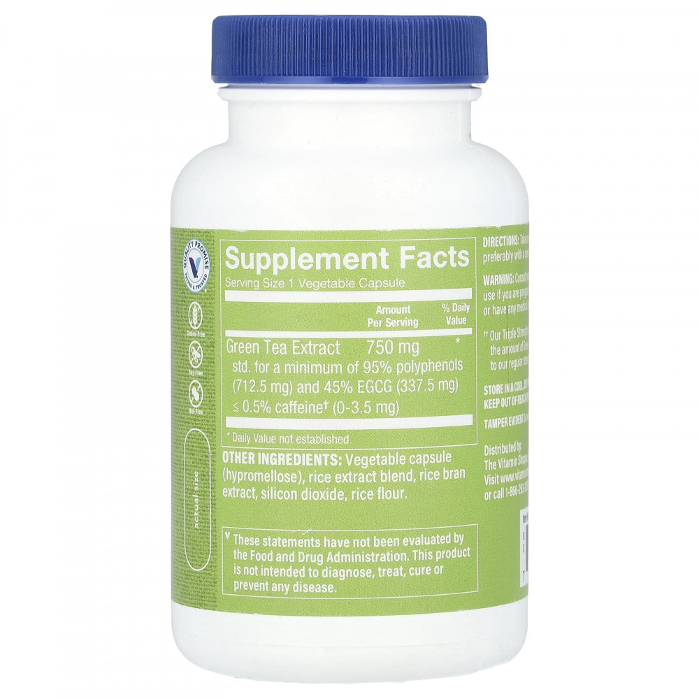 Экстракт зеленого чая тройной силы Vitamin Shoppe® не содержит кофеина, поэтому вы можете поддерживать свое общее самочувствие без каких-либо проблем.