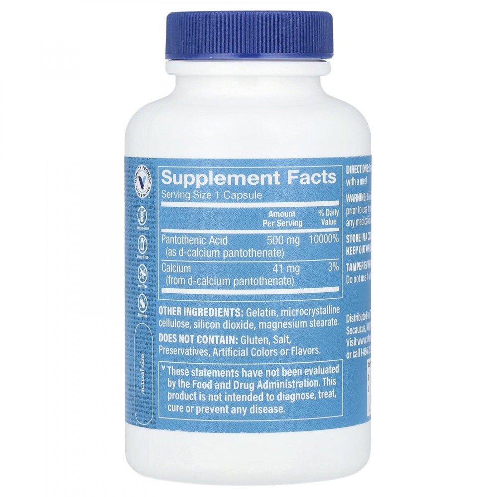 | Пантотеновая кислота (в виде d-пантотената кальция) | 500 мг | 10 000% |