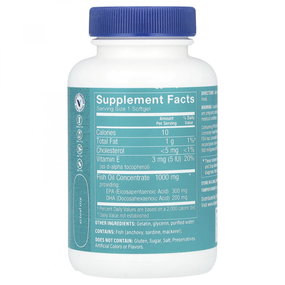 Комбинированное потребление ЭПК и ДГК может снизить риск ИБС (ишемической болезни сердца) за счет снижения артериального давления. Однако Управление по контролю качества пищевых продуктов и лекарственных средств США (FDA) пришло к выводу, что доказательства непоследовательны и неубедительны. Одна порция этого рыбьего жира с омега-3 содержит 500 миллиграммов ЭПК и ДГК.