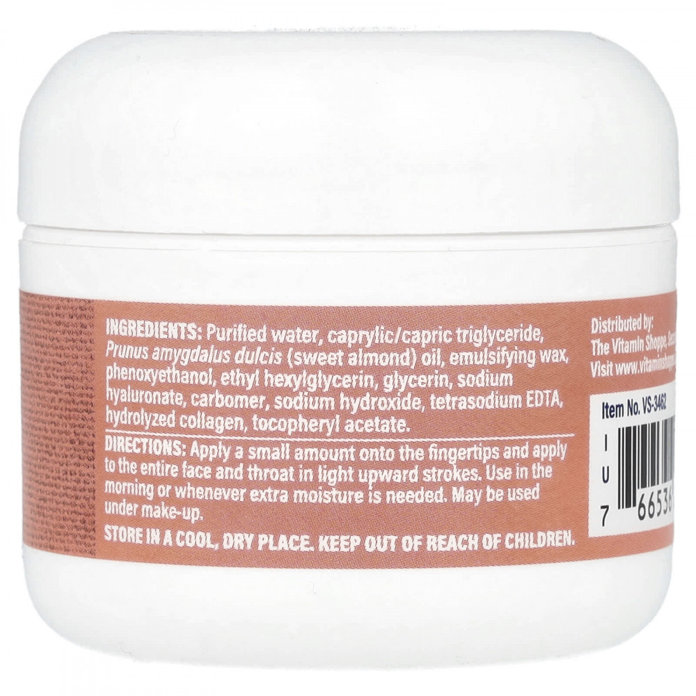 Поднимите настроение с помощью увлажняющего крема с гиалуроновой кислотой Vitamin Shoppe®. Этот омолаживающий крем удерживает влагу, помогая сухой коже оставаться увлажненной, эластичной и сияющей в течение всего дня без агрессивных сульфатов, парабенов, фталатов и гликоля.