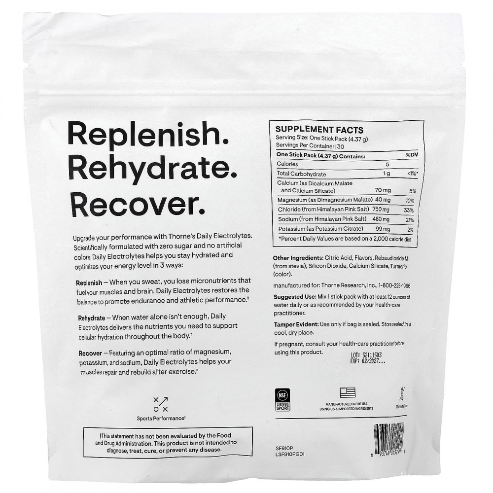 Повышайте работоспособность с помощью добавки с электролитами для ежедневного приема от Thorne. Научно разработанная добавка не содержит сахара и искусственных красителей, помогает поддерживать необходимый уровень энергии тремя способами:
