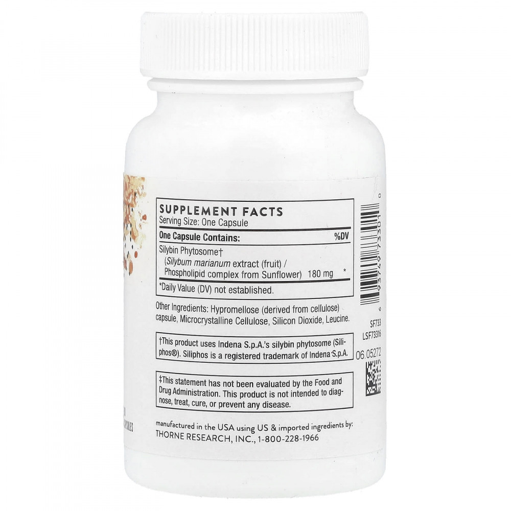 Расторопша содержит множество соединения с сильным антиоксидантным действием, которые защищают клетки печени от вредного воздействия свободны радикалов и укрепляют клеточные мембраны печени, помогая поддерживать собственную систему антиоксидантов печени — глутатион и супероксиддисмутаза (SOD). В многих исследованиях силибин (наиболее активный флавоноид, содержащийся в расторопше) использовался, чтобы защитить клетки печени от воздействия тетрахлорметана, этанола, ацетаминофена, грибных токсинов и бензапирена из автомобильных выхлопов. Siliphos от Thorne предлагает полезные свойства силибина и фосфатидилхолина в одном хорошо усвояемом соединении. Эти ингредиенты с большой вероятностью оказывают синергетическое воздействие, предотвращая разрушение клеток печени. Исследования показывают, что этот комплекс из силибина и фосфатидилхолина обладает повышенной усвояемостью в сравнении с обычными продуктами из расторопши.