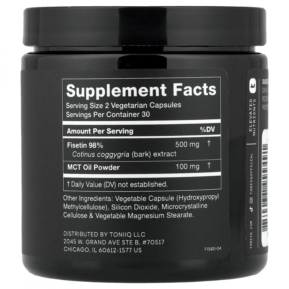 Физетин сверхвысокой чистоты Toniiq 500 мг был разработан как одна из самых чистых и биодоступных добавок с физетином на рынке. Наши капсулы с физетином очищены на 98%+, что гарантирует то, что вы получите максимальные преимущества от этого невероятно эффективного сенолитического питательного вещества.