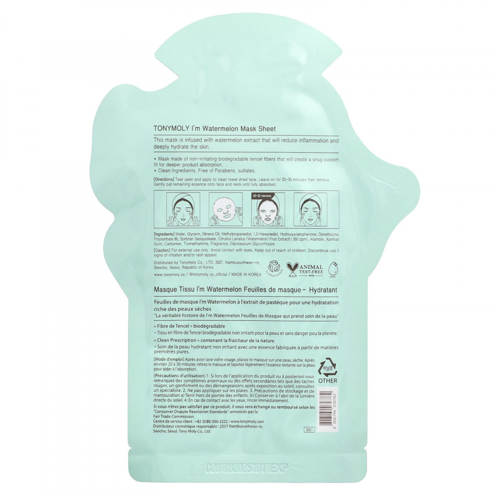 Эта маска содержит экстракт арбуза, который уменьшает воспаление и глубоко увлажняет кожу.