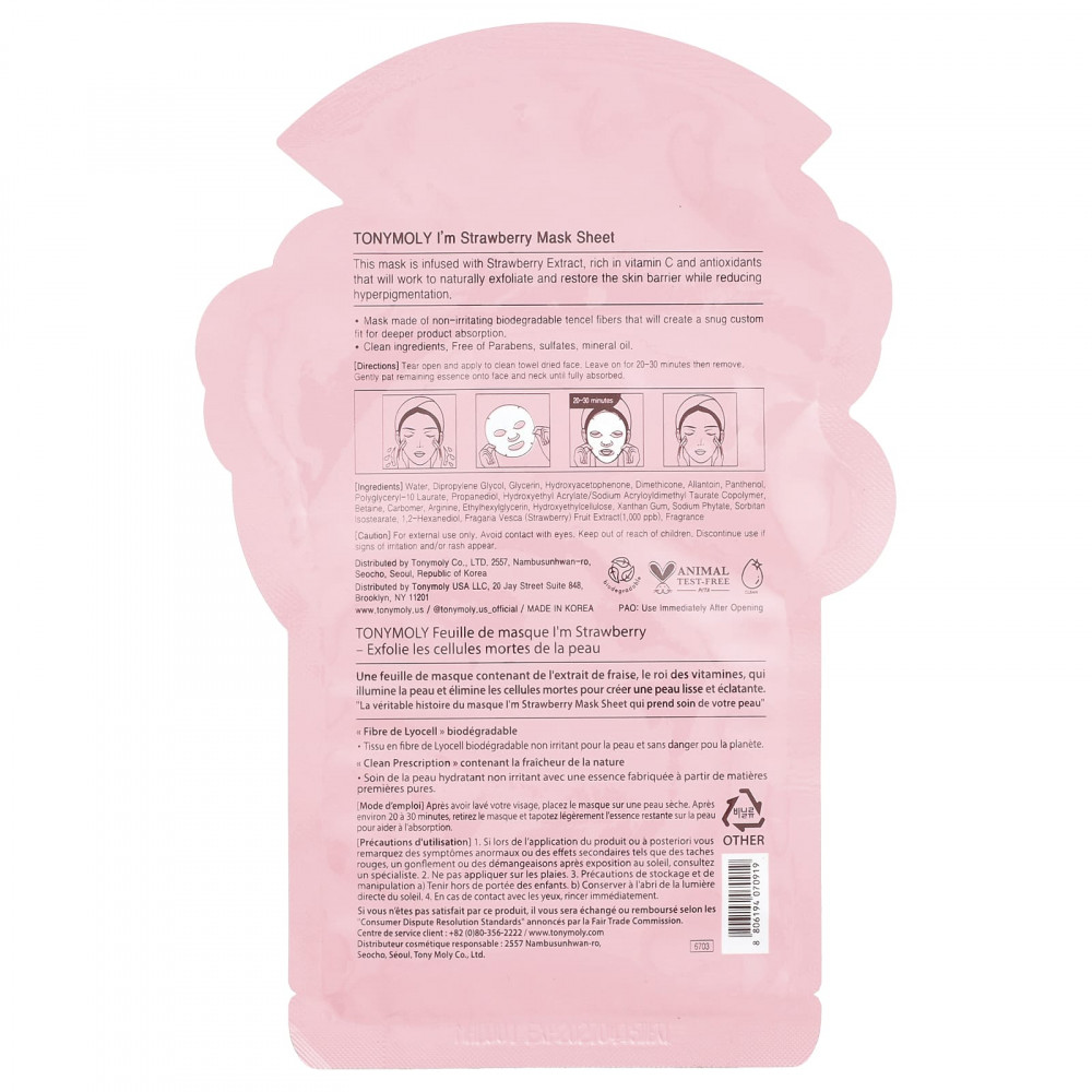Эта маска содержит экстракт клубники, богатый витамином С и антиоксидантами, которые естественным образом отшелушивают и восстанавливают кожный барьер, уменьшая гиперпигментацию.