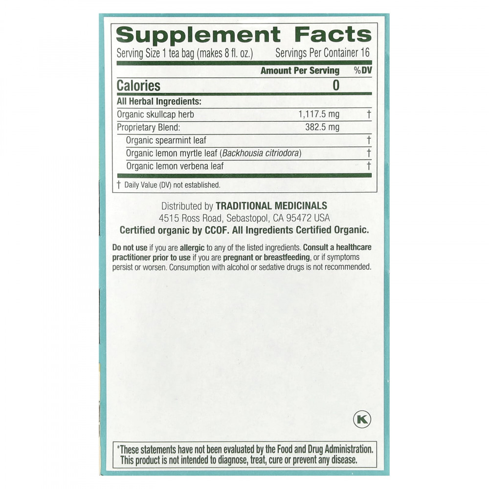 Эта смесь содержит травы, известные как нервы, которые веками использовались травниками для питания и поддержки нервной системы. Американская тюбетейка - одно из таких растений, произрастающих в Северной Америке. Тюбетейка, принадлежащая к семейству мятных, мягко снимает напряжение, обеспечивая отсутствие сонливости, когда вам это больше всего нужно. Эта легкая и мягкая смесь также содержит лимонную вербену и мяту, помогающую снять дневной стресс.