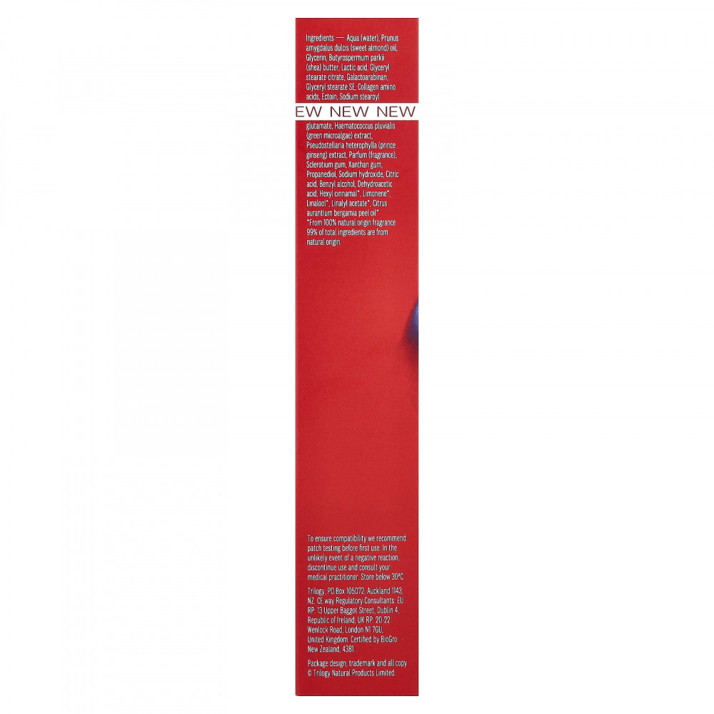 Вода, масло сладкого миндаля (Prunus amygdalus dulcis), глицерин, масло ши (Butyrospermum parkii), молочная кислота, глицерил стеарат цитрат, арабиногалактан, глицерил стеарат эмульгирующий, коллагеновые аминокислоты, эктоин, натрия стеароил глутамат, экстракт зеленых микроводорослей (Haematococcus pluvialis), экстракт женьшеня (Pseudostellaria hybrida), парфюмерная композиция (отдушка), смола склероций, ксантановая камедь, пропандиол, гидроксид натрия, лимонная кислота, бензиловый спирт, дегидроуксусная кислота, гексил циннамал*, лимонен*, линалоол*, линалил ацетат*, масло из цедры апельсина (Citrus aurantium bergamia)*.