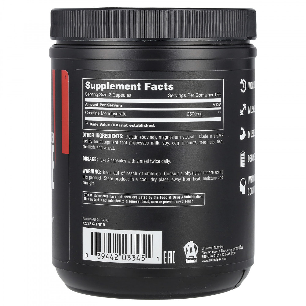 Сосредоточьтесь на тяжелой работе, зная, что с Animal Creatine вы сможете восстановиться. Он содержит наиболее легко усваиваемый моногидрат креатина. Креатин питает мышцы, обеспечивая высокоэнергетическую связь в мышцах и нервной ткани для поддержания уровня АТФ во время мышечного сокращения. Клинические исследования показали, что повышенный уровень креатина в организме также способствует оптимальному восстановлению после тренировок, ускоряет рост сухой мышечной массы и отсрочивает наступление мышечной усталости.