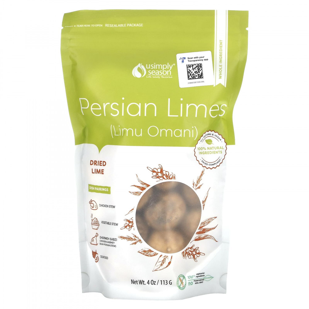 Оманский чай лиму, также известный как персидский лайм, представляет собой небольшие лаймы, которые варят в соленой соли и оставляют сушиться на солнце. Эти лаймы являются основным продуктом иранской кухни и используются целиком, нарезанными или молотыми в качестве специи в ближневосточных блюдах. Небольшое количество сушеного лайма, целого или молотого, имеет большое значение. Для приготовления большинства блюд вам понадобится только один или два вида приправ, поскольку они очень эффективные и имеют длительный срок годности, поэтому нет необходимости использовать их все сразу.