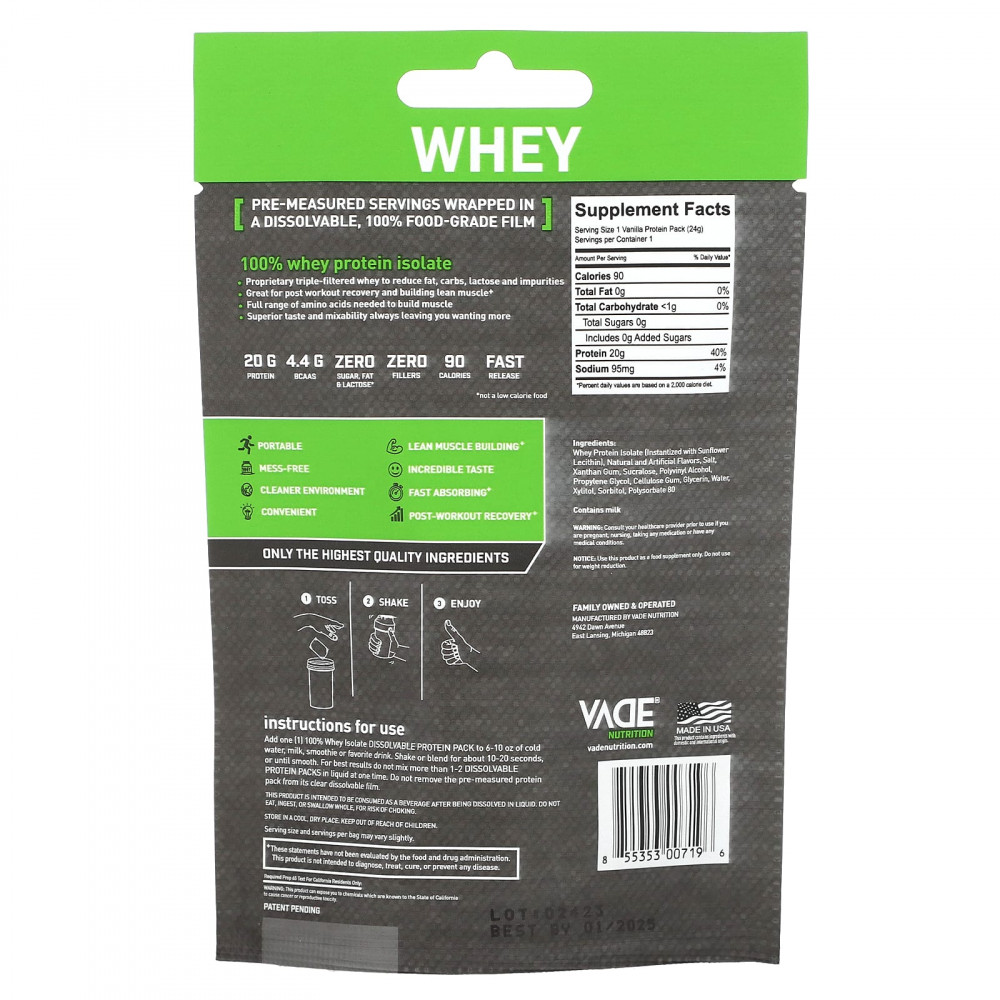 Добавьте одну (1) упаковку растворимого протеина из 100% изолята сыворотки в 180–10 мл (6–10 унций) холодной воды, молока, смузи или любимого напитка. Встряхивайте или взбивайте в течение 10–20 секунд или до получения однородной массы. Для достижения наилучших результатов не смешивайте более 1–2 пакетиков растворимого протеина в жидкости за один раз. Не вынимайте предварительно отмеренную порцию протеина из прозрачной растворимой пленки.