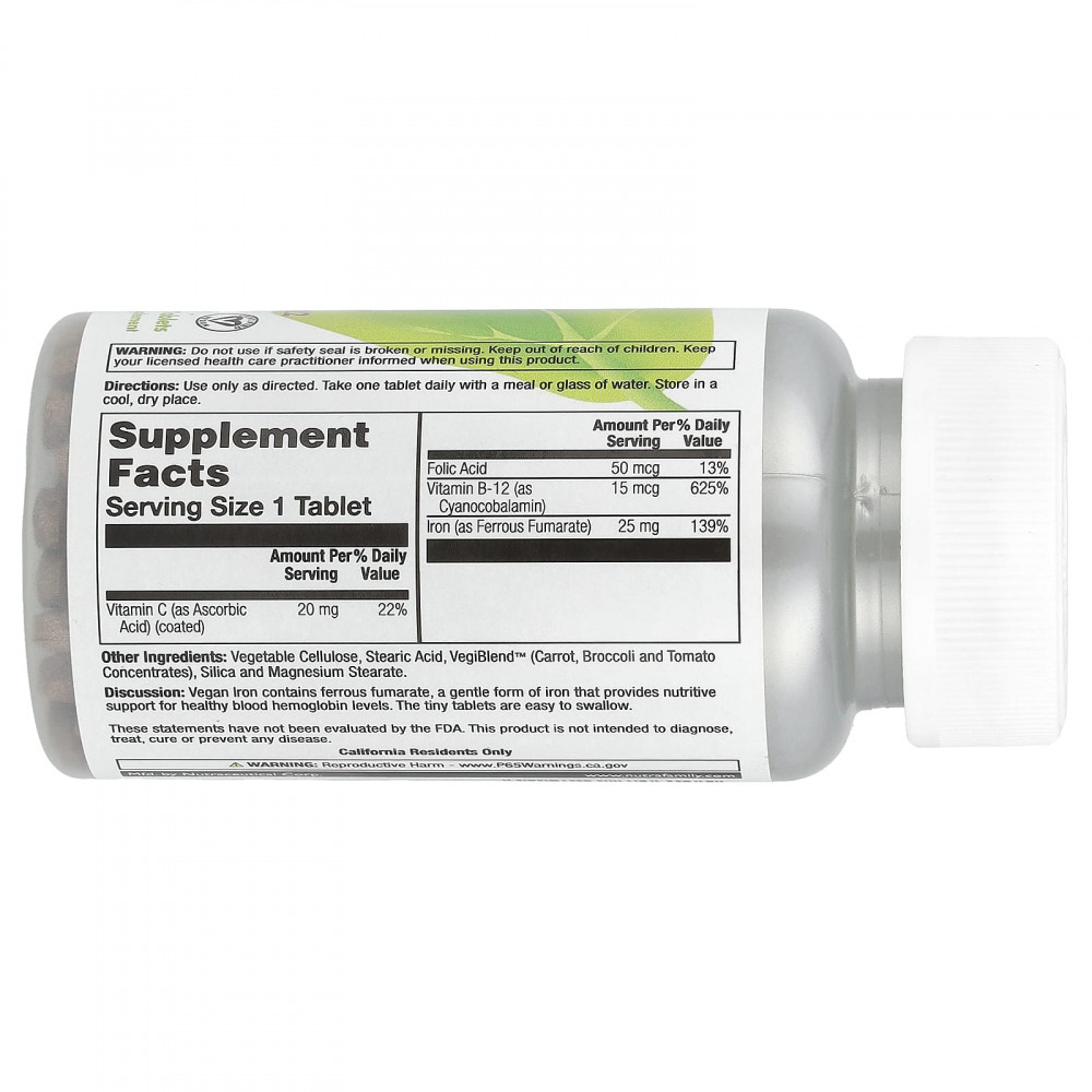 Описание. Железо, которое подходит для веганов, содержит фумарат железа, мягкую форму железа, которая обеспечивает питательную поддержку для здорового уровня гемоглобина в крови. Маленькие таблетки легко глотать.