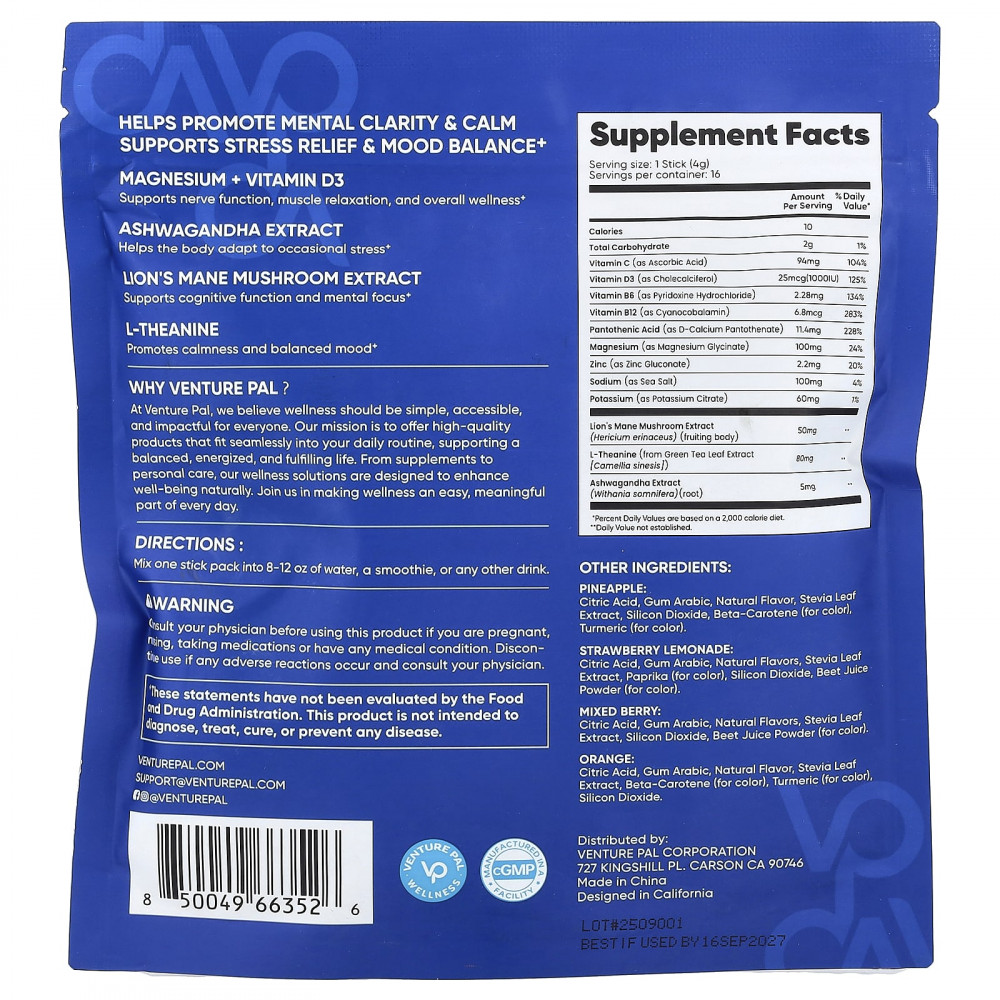 В компании Venture Pal мы считаем, что хорошее самочувствие должно быть простым, доступным и эффективным для каждого.Наша миссия - предлагать высококачественные продукты, которые органично впишется в ваш повседневный рацион, поддерживая сбалансированную, активную и полноценную жизнь.Наши решения для хорошего самочувствия, от добавок до средств личной гигиены, предназначены для естественного улучшения самочувствия.Присоединяйтесь к нам, чтобы сделать хорошее самочувствие легкой и эффективной частью каждого дня.