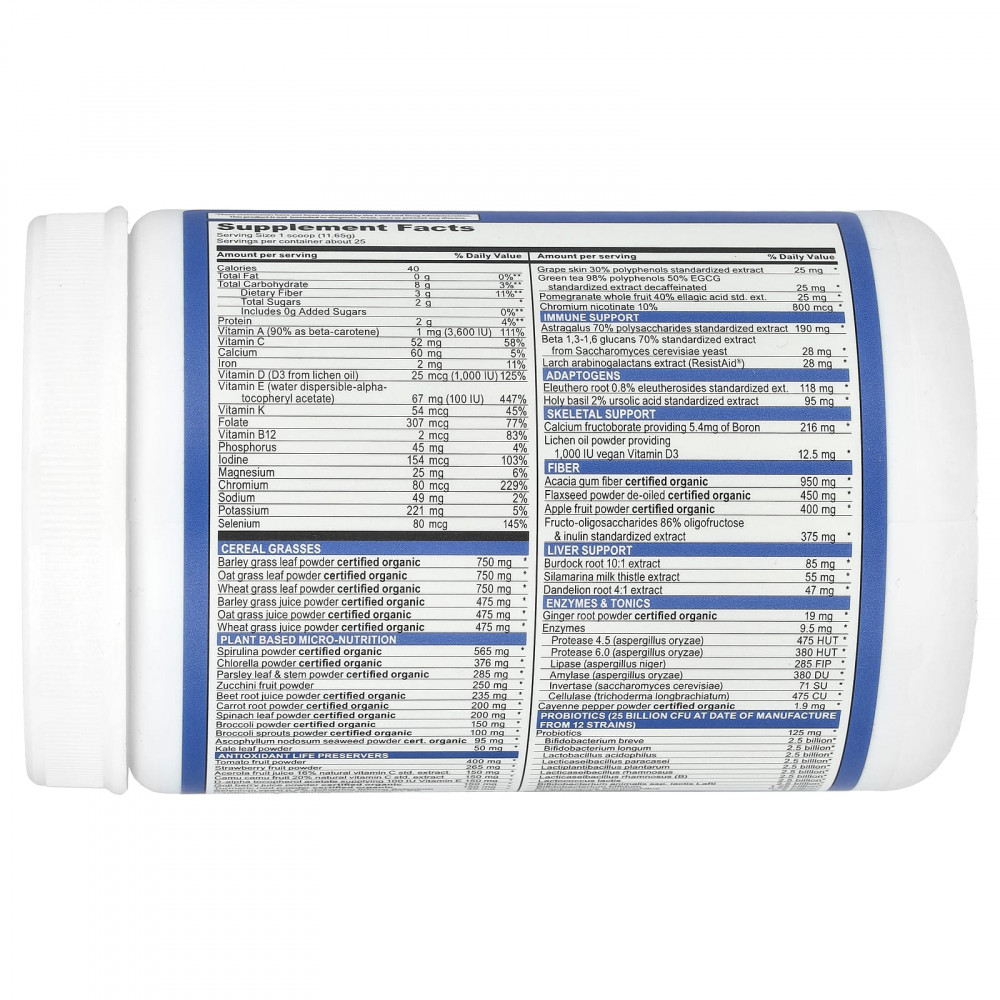 | Порошок из сока овсяных трав, сертифицированный органический | 475 мг | * |