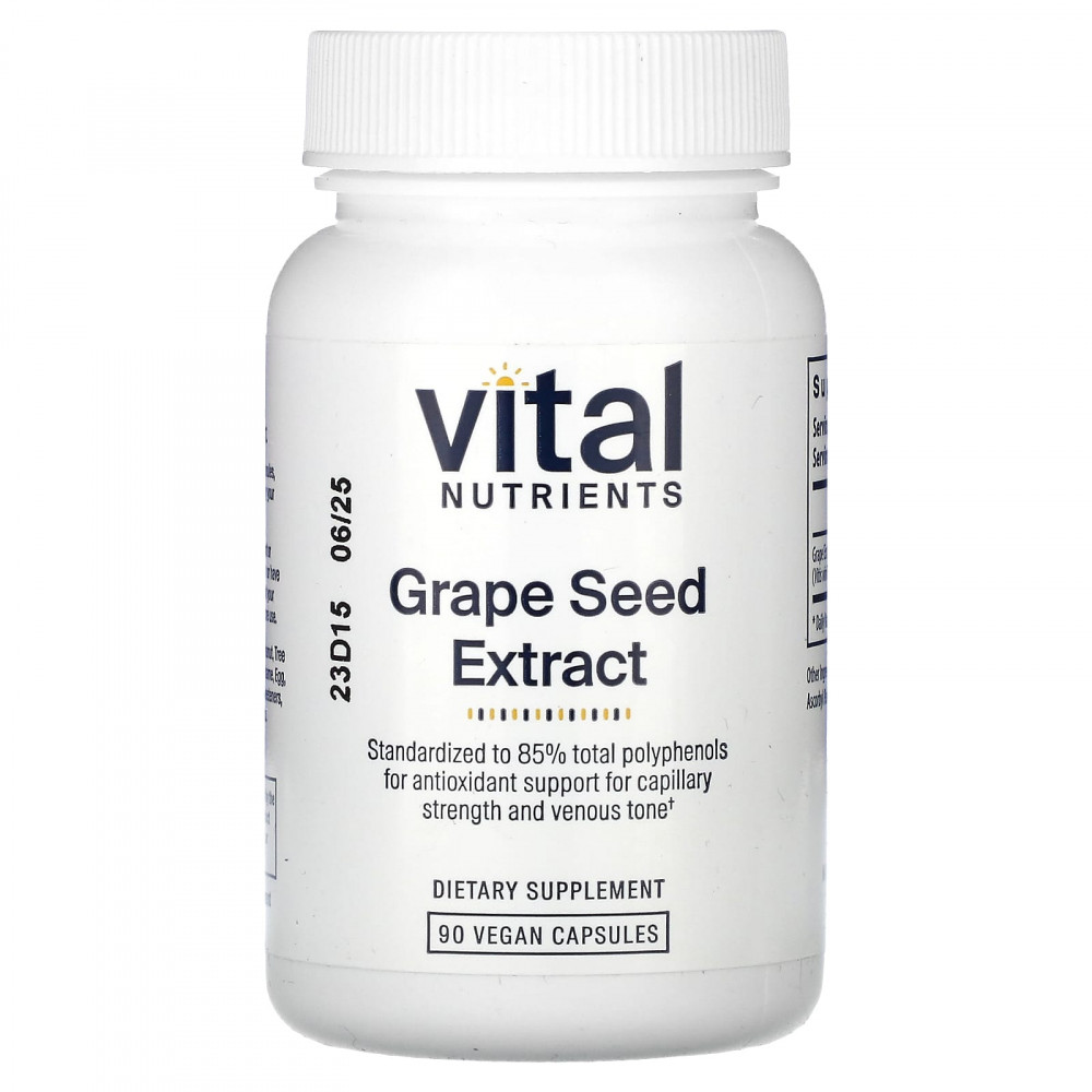 Экстракт виноградных косточек содержит олигомерные проантоцианидины (OPC). Это богатые флавоноидами соединения с очень мощными антиоксидантными свойствами. Было обнаружено, что OPC подавляет перекисное окисление липидов и влияет на ферментные системы, включая фосфолипазу A2, ксантиноксидазу, циклооксигеназу и липоксигеназу. OPC помогают поддерживать прочность и целостность капилляров, а также тонус вен.