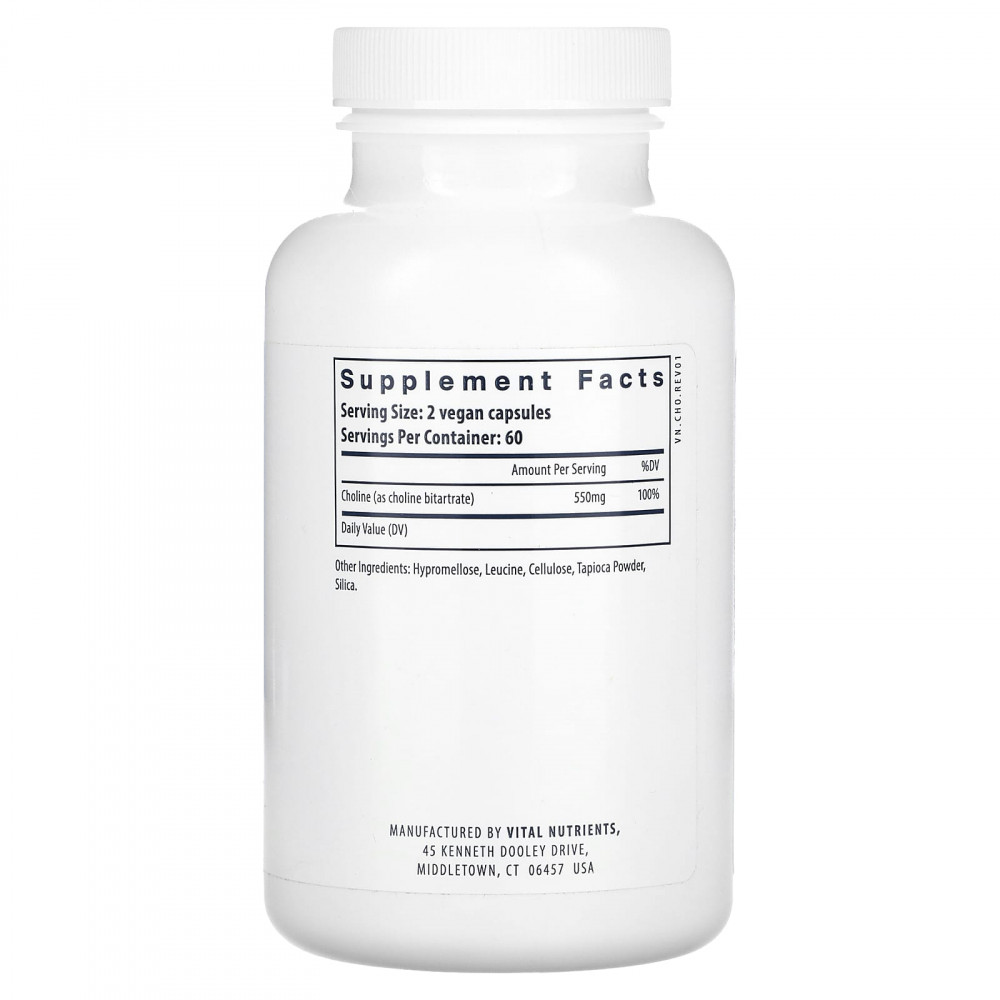 Холин — важное питательное вещество, которое естественным образом содержится в некоторых продуктах питания, особенно в продуктах животного происхождения, таких как печень, лосось и яйца. Холин (битартрат) обеспечивает метильные группы, необходимые для многих различных метаболических функций, включая нормальную работу мышц, здоровье печени и раннее развитие мозга. Холин необходим организму для производства фосфолипидов, которые жизненно важны для целостности клеточных мембран и миелинизации нервов. Холин, входящий в состав нейромедиатора ацетилхолина, улучшает память, настроение и улучшает мышечный контроль. Холин также помогает модулировать экспрессию генов, передачу сигналов клеточных мембран, а также транспорт и метаболизм липидов. Хотя некоторое количество холина вырабатывается в печени, этого количества недостаточно для удовлетворения потребностей организма. Поэтому большинство людей в США потребляют меньше холина, чем необходимо, чтобы предотвратить его дефицит. Это привело к недавней публикации рекомендуемой суточной дозы для взрослых в размере 550 мг, которую можно получить из пищи или принимая холиновую добавку. К группам повышенного риска дефицита холина относятся беременные женщины, вегетарианцы и люди с генетическими вариациями, связанные с метаболизмом холина, фолата и метионина. Американская медицинская ассоциация и Американская академия педиатрии недавно подтвердили важность научно обоснованного количества холина для беременности и кормления грудью. Предварительные исследования показывают, что более высокое потребление холина матерью во время беременности и, возможно, в период лактации может иметь долгосрочные преимущества для нейрокогнитивной функции ребенка.