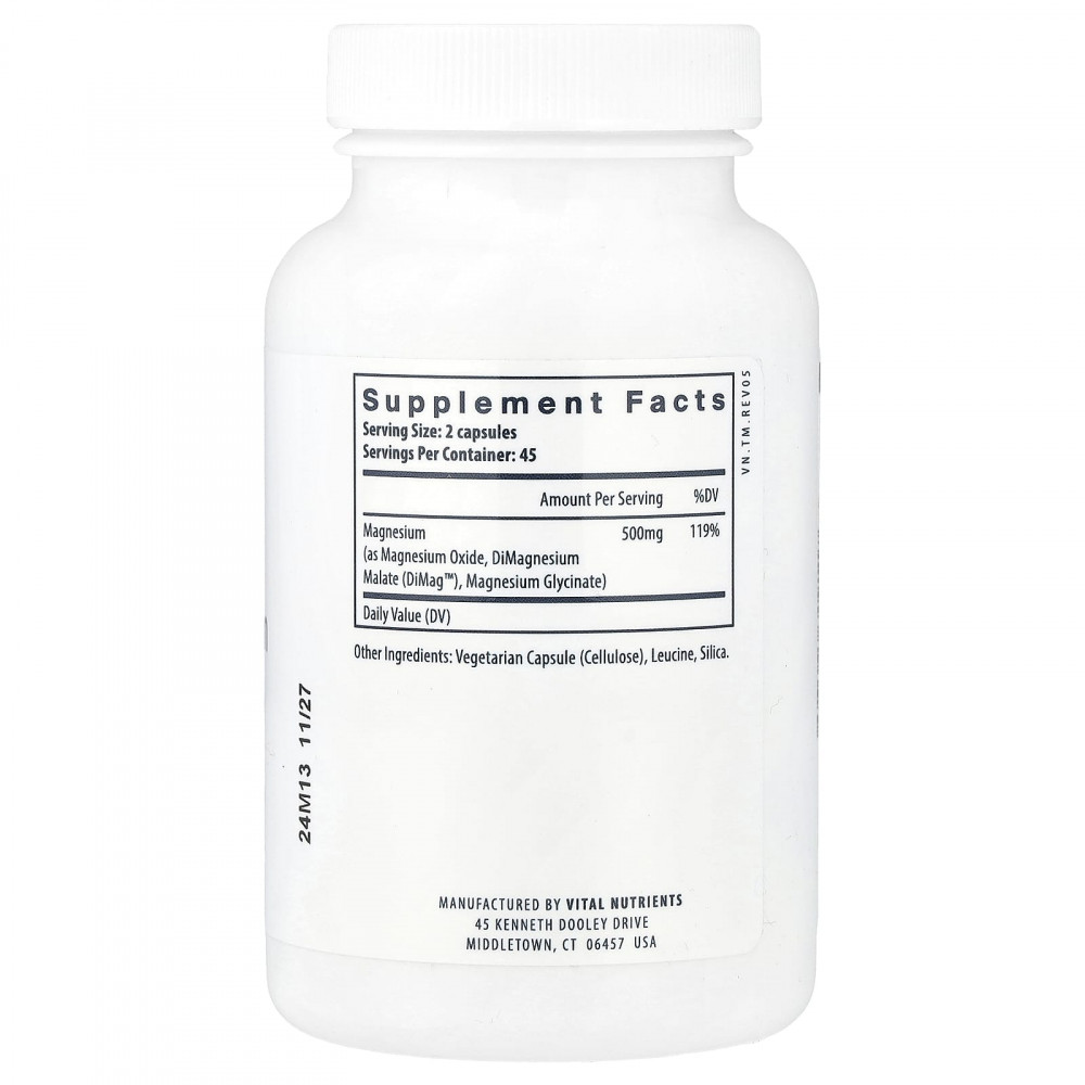 | Магний (в виде оксида магния, димагния малата (DiMag ™), глицината магния) | 500 мг | 119% |