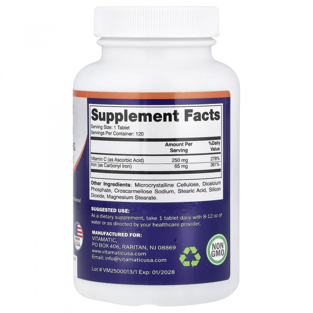 Мягкая, но эффективная поддержка железом: Наше карбонильное железо содержит 65 мг элементарного железа в форме, которая легко переносится желудком и хорошо усваивается, идеально подходит для людей с чувствительностью к железу или проблемами с пищеварением.
