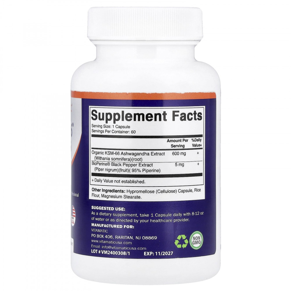 | Экстракт органической ашваганды KSM-66 (Withania somnifera) (корень) | 600 мг | + |