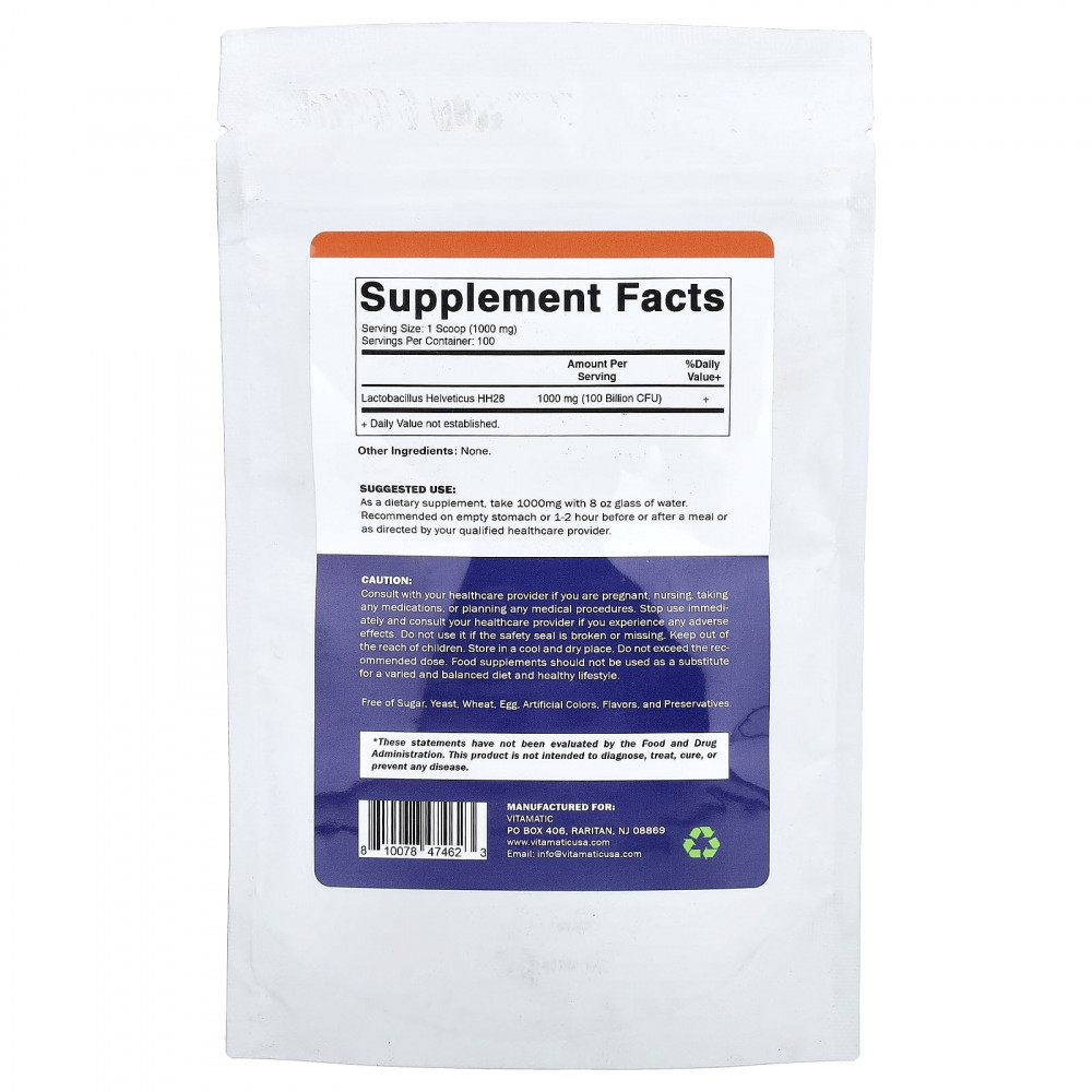 | Лактобактерии гельветикус (Lactobacillus helveticus) HH28 | 1000 мг (100 млрд КОЕ) | + |