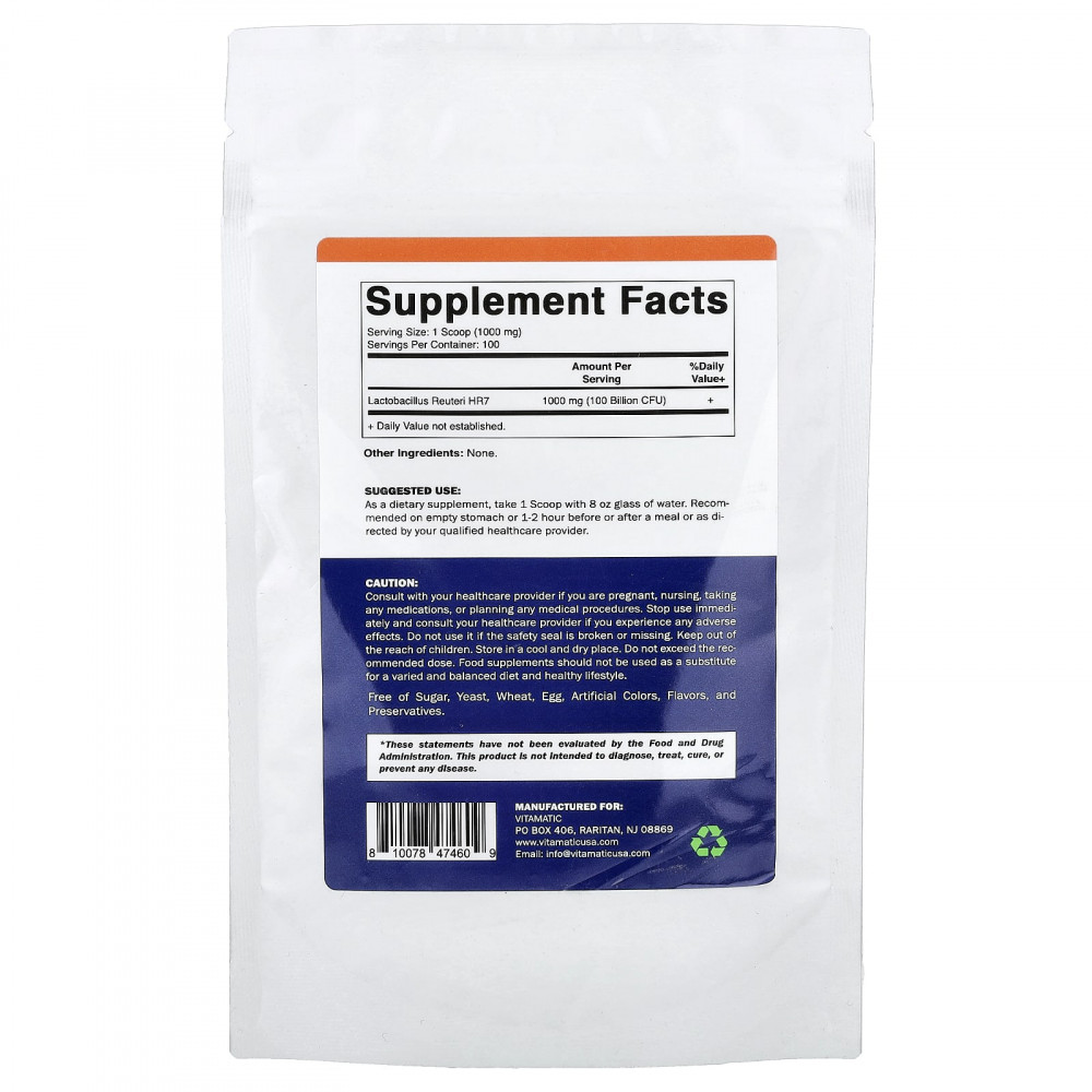 | Лактобактерии реутери (Lactobacillus reuteri) HR7 | 1000 мг (100 млрд КОЕ) | + |