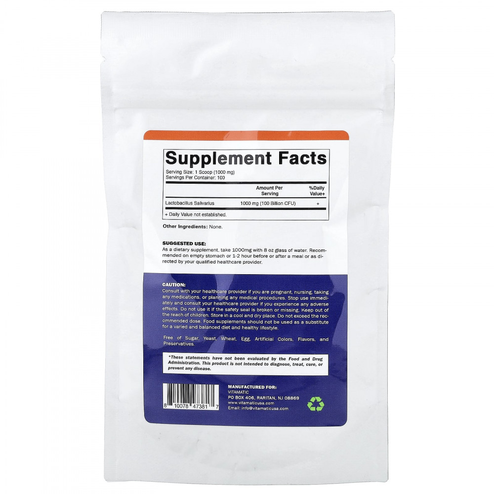 | Лактобактерии саливариус | 1000 мг (100 млрд КОЕ) | + |