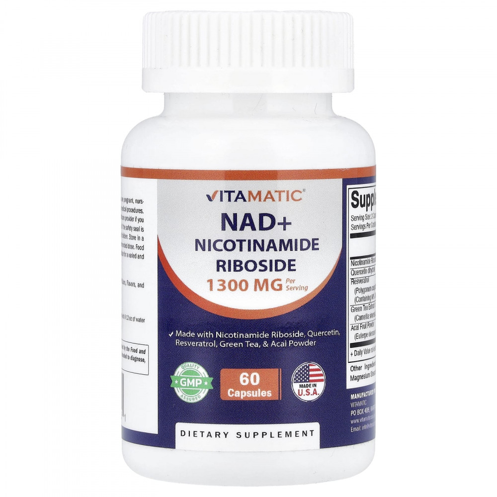 Улучшенная формула: В состав входят никотинамид рибозид, кверцетин, ресвератрол, зеленый чай и порошок из асаи для поддержки общего хорошего самочувствия.